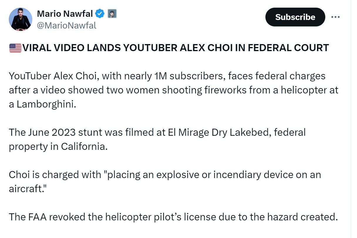 so, apparently, youtuber alex choi is facing federal charges for making a video.