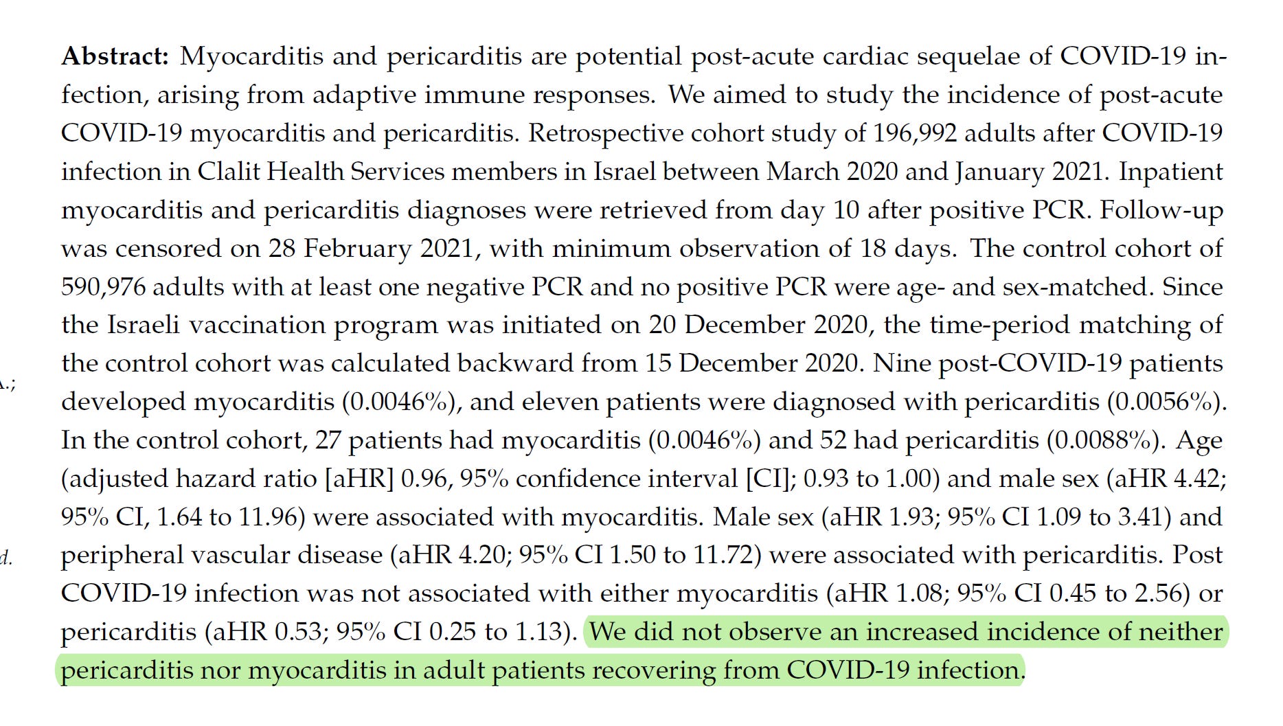 but, like so many other claims like “vaccines will stop spread” and “your mask protects me,” as the data really comes in, this tale of covid induced heart inflammation has failed to validate.