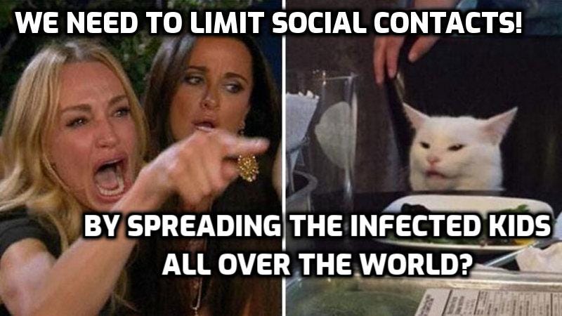 on the one hand, they seek to “restrict social activities” but on the other, they go full clown world and turn what would be functional quarantine of the sick, isolated on university campuses, into, wait for it: