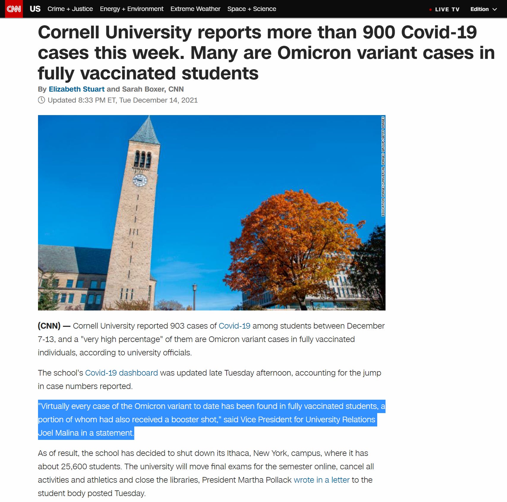 That the increase in cases is happening due to the heavily vaxxed Cornell populace having their immune systems vaporized by these injections is a conversation that is off the table.