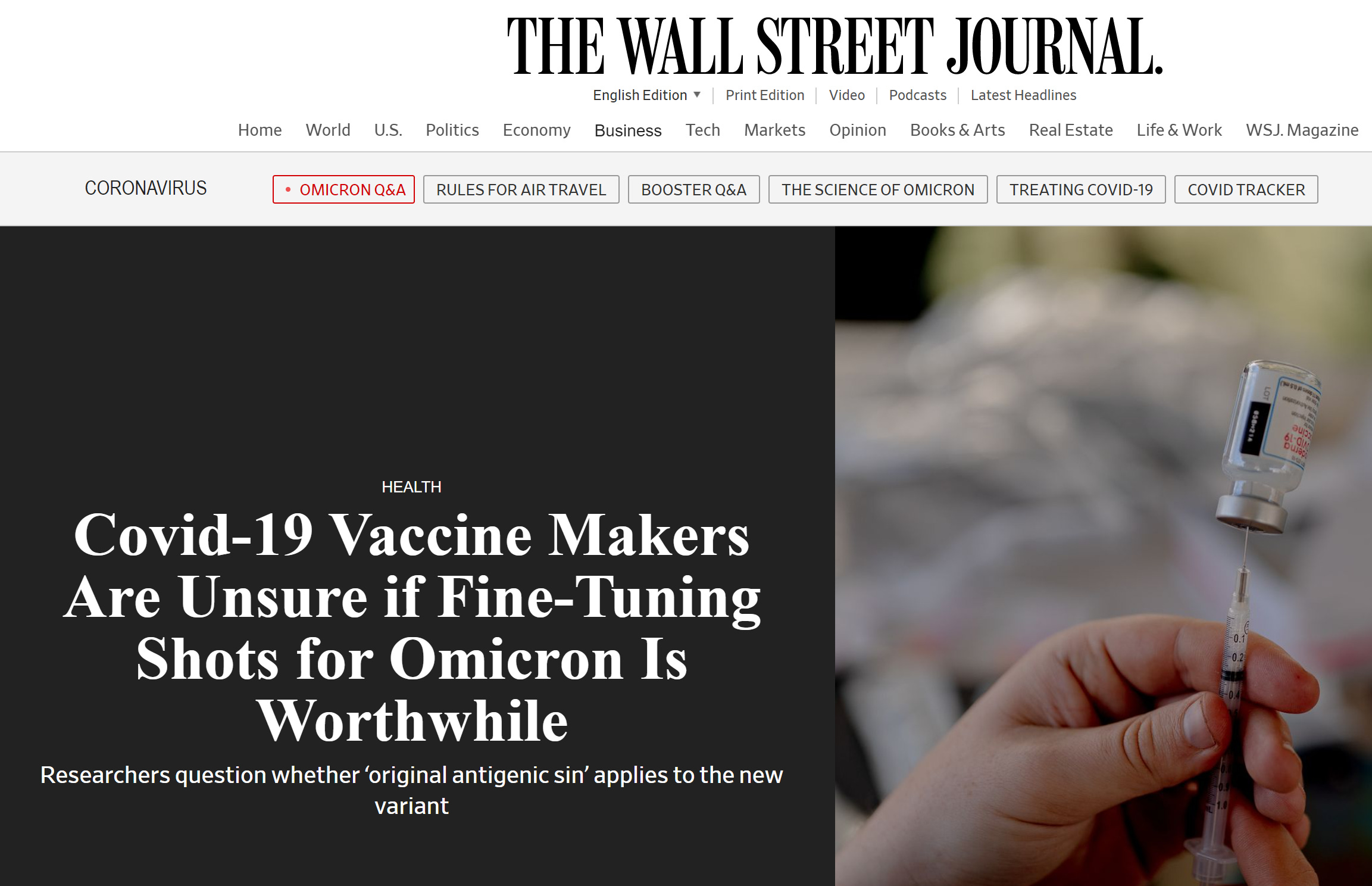 despite the fact that even mainstream media and vaccine companies are now acknowledging the original antigenic sin/immune imprinting issue and questioning whether it even makes sense to tailor vaccines to variants as doing so may just elicit the same response already known. (amusingly, an outright admission that boosters are not needed as you already are trained in the response)