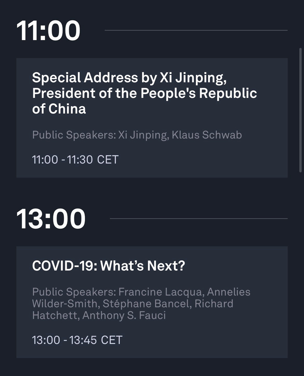 it’s not some coincidence that fauci is speaking at the WEF today right after klaus and xi jinping. these are the global corporatist technocrats. it’s the 1000 richest foxes in the world assembling political puppets to see if they can divvy up the henhouses with them in charge. they seek technocratic trans-national control. it’s no secret, they say so themselves.