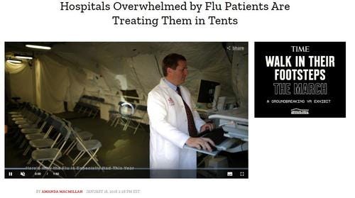 this was all more media stunt than reality. i could show you a dozen stories of patients being treated in tents in NYC, LA, and who knows how many other cities, but they all come from the 2018 flu season. amusingly enough, i did show these things last year and had it get picked up nationally back when bad kitties were allowed on the bullying bluebird and still got invited to fight club (link to zero hedge article). sadly, nothing has changed.
