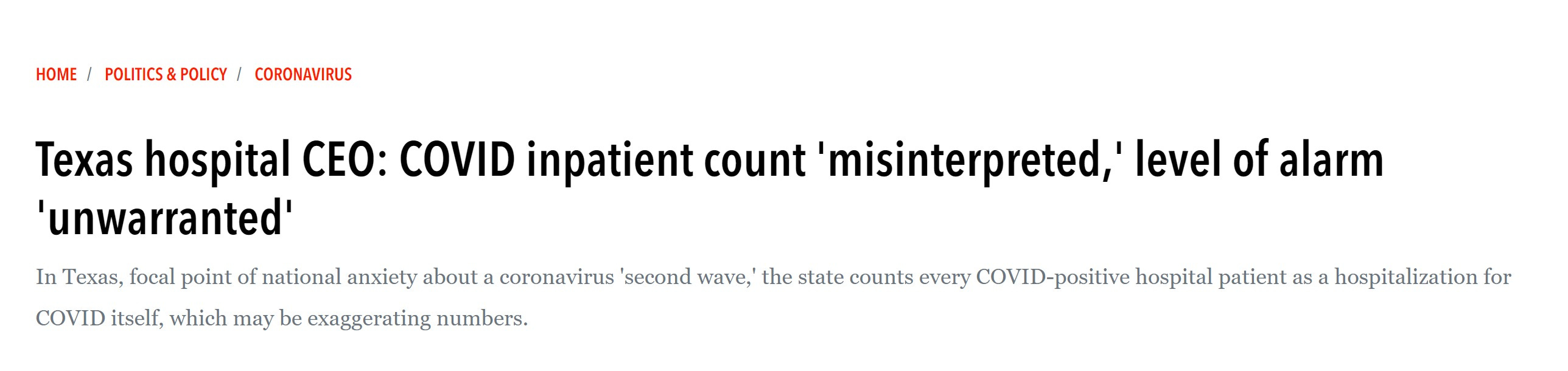 remember last summer when all the texas hospitals were supposed to be in the brink? breathless docs claimed “we’re out of space! i’ve been making life and death decisions all day! the phone rings and we tell people “we cannot help you” because the system is overwhelmed.”