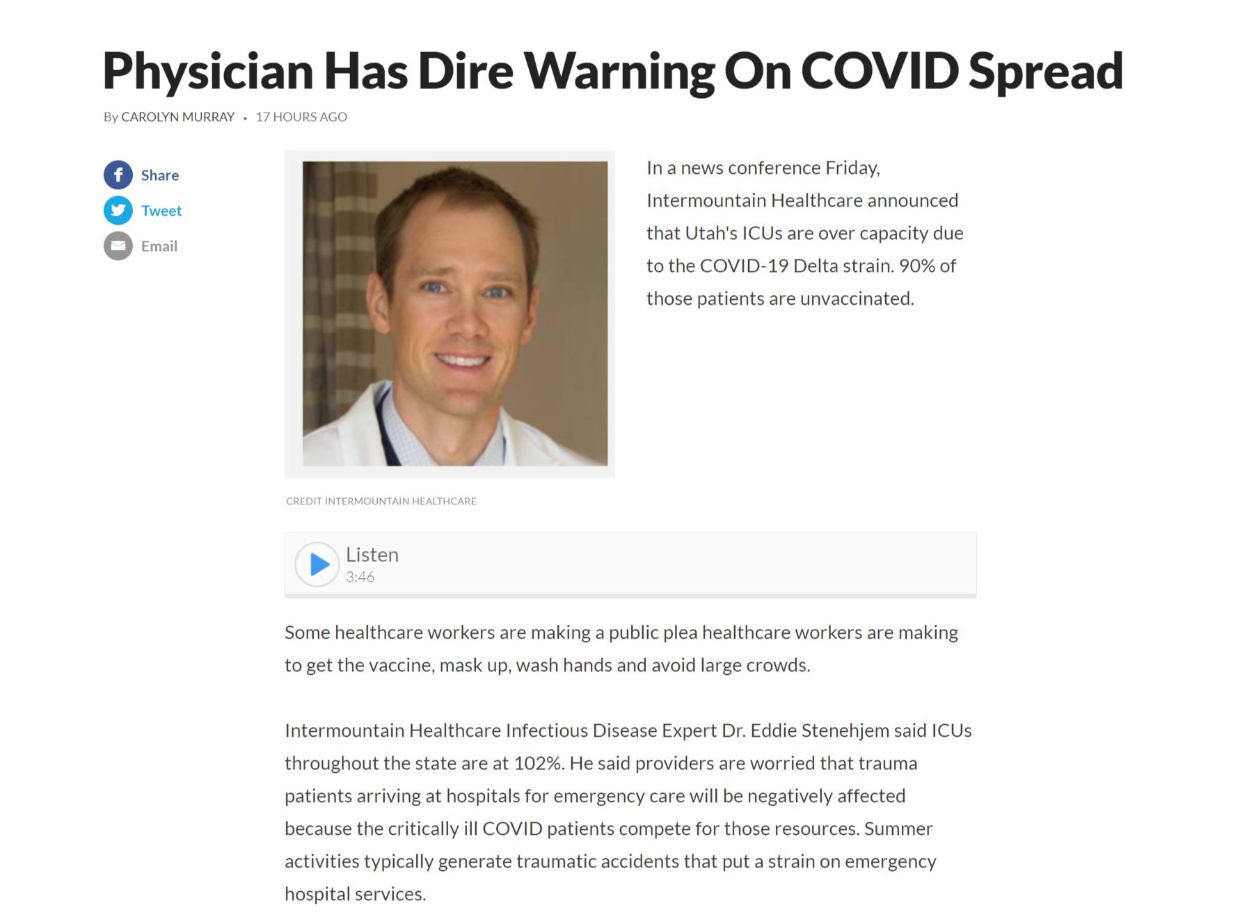 “cases” in UT are 75% lower than in january, a time when hospitals here were all fine. yet we are to believe that this is driving 102% ICU when it did not before despite the now predominant delta variant being far less likely to generate severe cases and deaths?