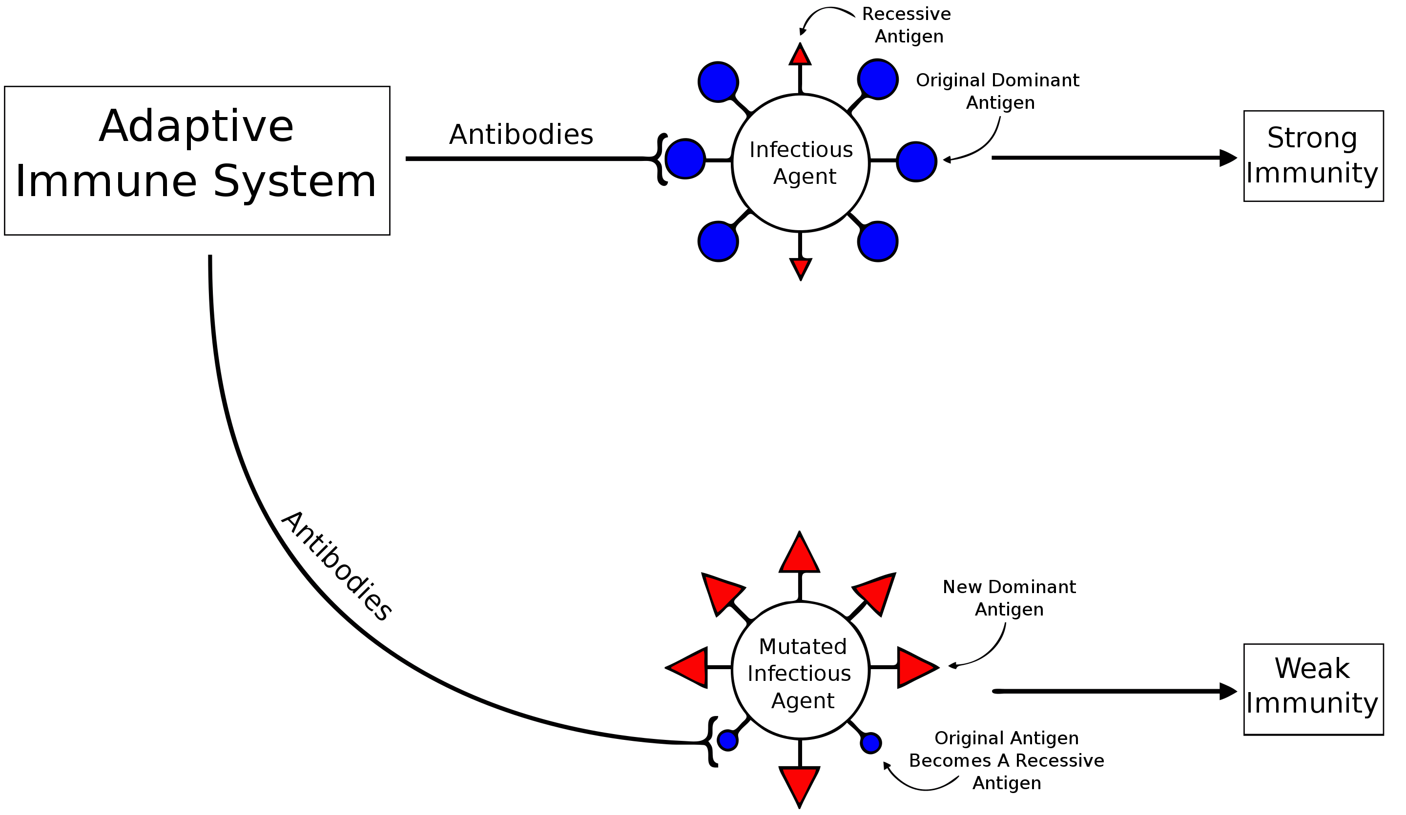 antigenic fixation/hoskins effect/OAS is a simple evolutionary process driven by strong immune imprinting such as that from narrow vector leaky vaccines.