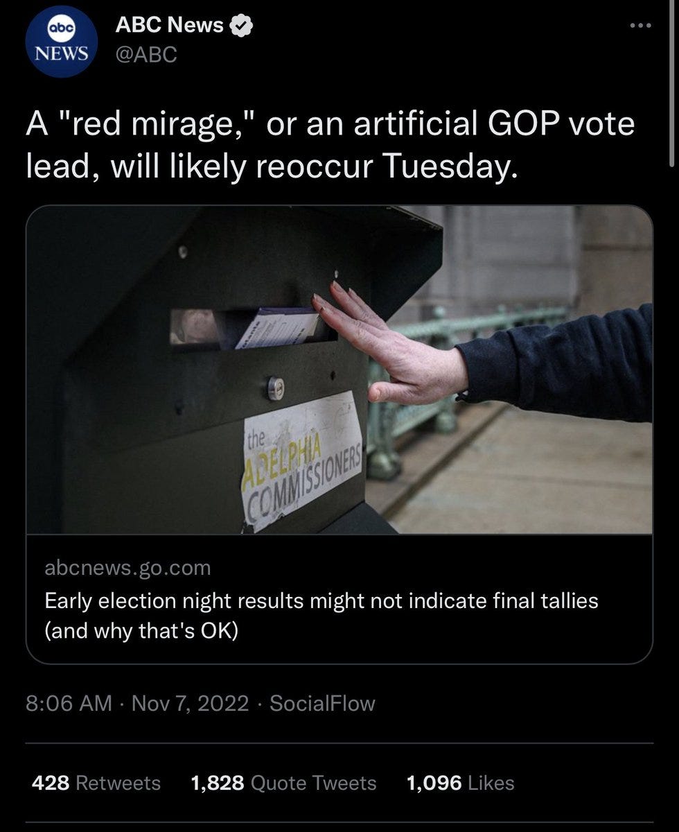 then use media to generate an expectation that your opponent winning is “a mirage” and that people should expect to see the lead flip.