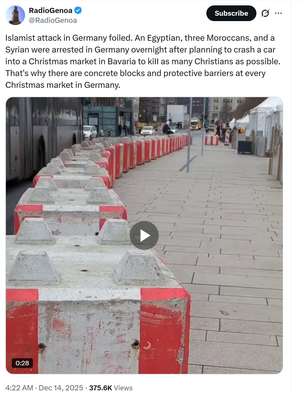 for any cause, this sort of disruption and behavior would be intolerable, but in support of intifada at christmas on the day after a massacre and in a europe whose christmas markets now need fallujah-level anti-vehicle protection, this gets pretty wild. it’s pure provocation and domination.