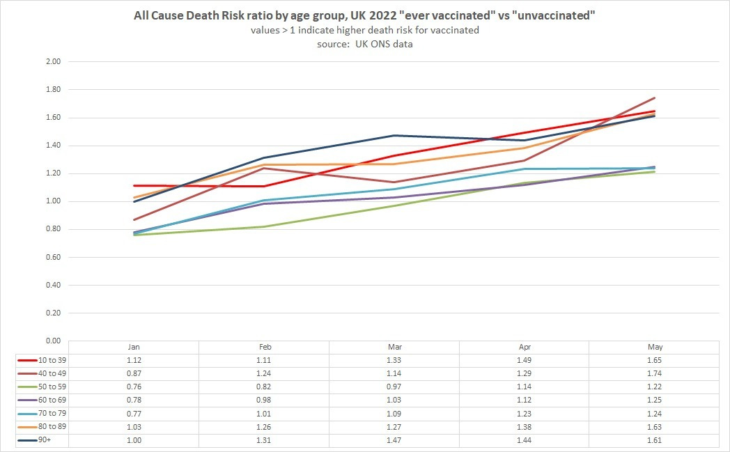 my goal is so doing is to show that even when accepting this slanted playing field and steel-manning the case for vaccine efficacy on all cause mortality, they still fail badly. whether vaccines ever worked in this regard could be debated, but if ever they did, they certainly do not appear to anymore and that trend looked to be worsening in may of 2022 when the ONS (yet again) terminated a data series where the problems with the jabs were getting too bad to hide.