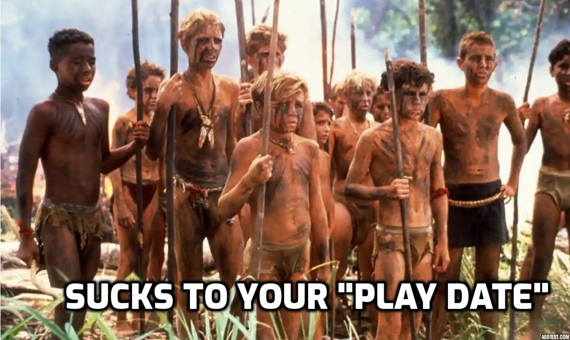 every kid yells “MOM!” at the first sign of trouble and mom wades in and regulates. so no one ever learns anything except how to yell for help in more compelling fashion than the other kids.