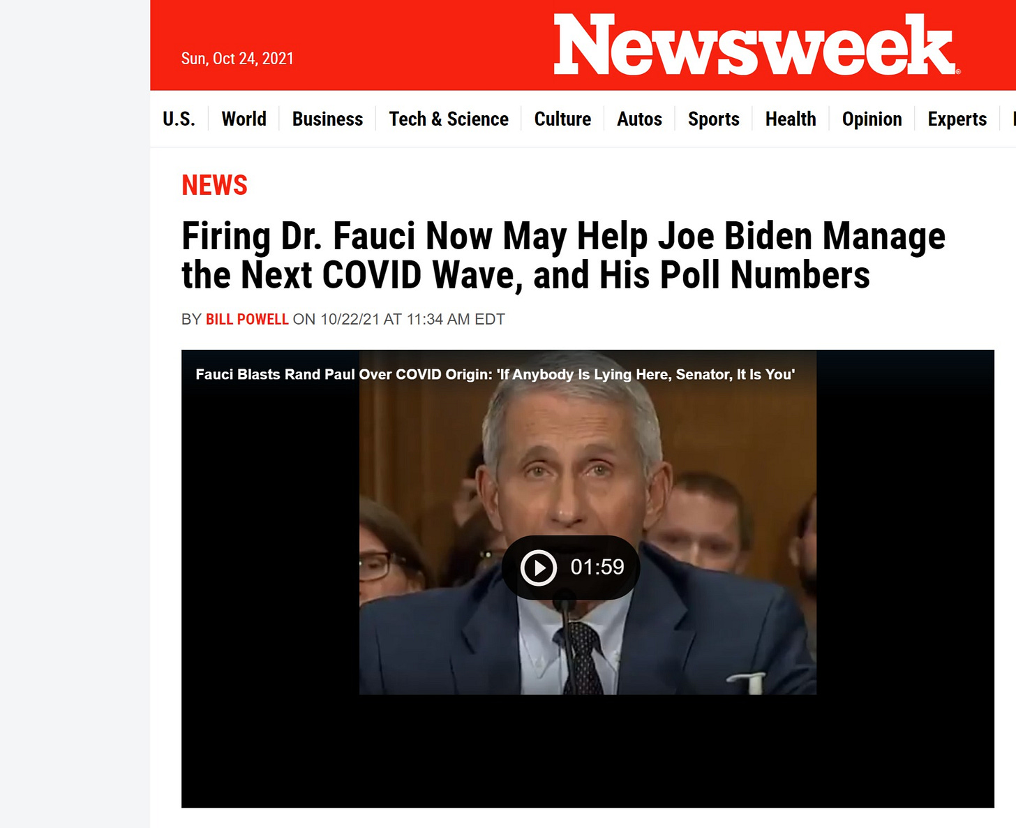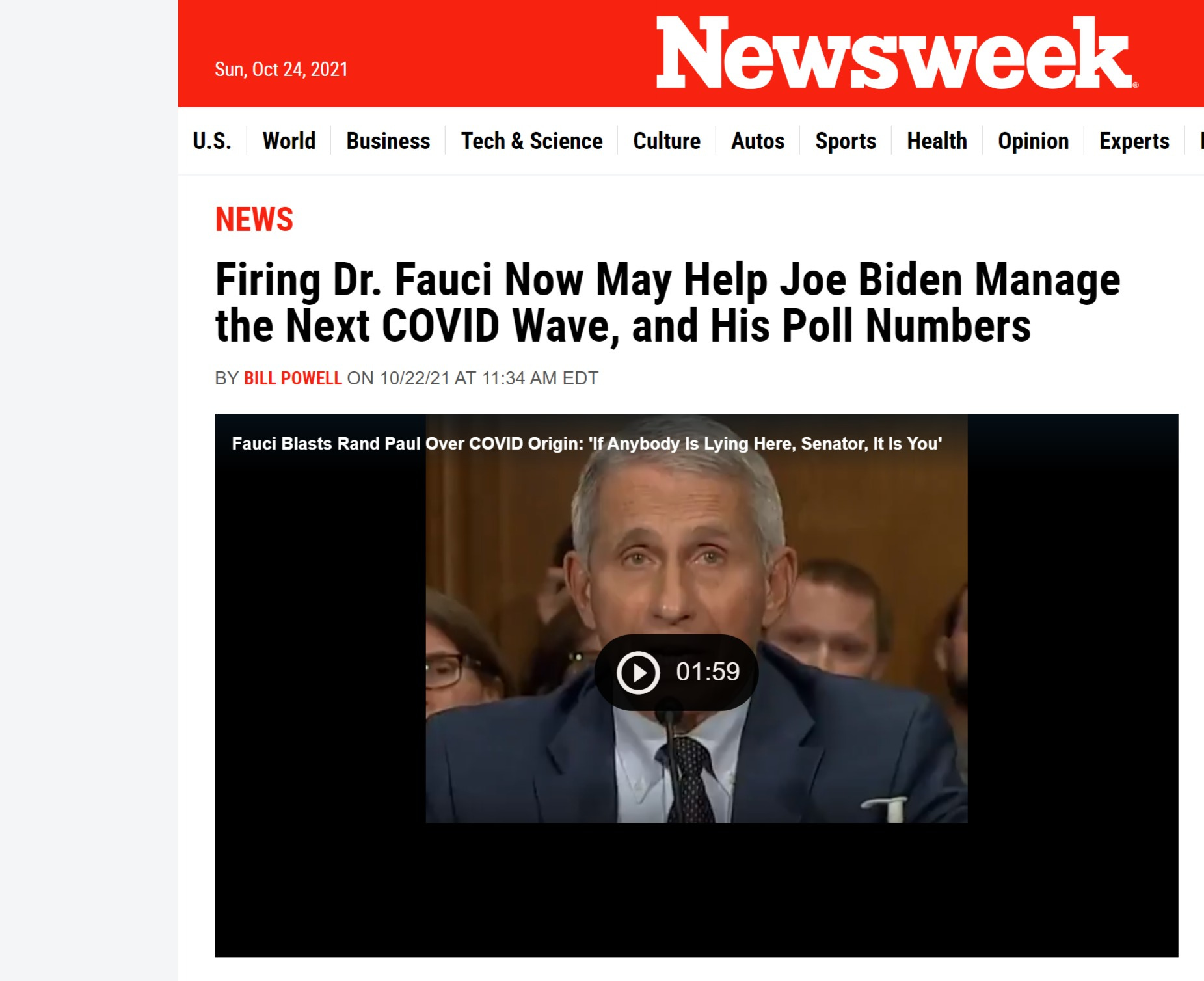 fauci has long been an embarrassment. he’s been wrong on every substantive utterance he has made since about may of last year. but he’s also well liked and popular with much of the public. he’s been borderline beatified with every new talking point turned to gospel by a public and media desperate for someone to tell them what to do in a loud, authoritative, telegenic voice. and tony certainly never lacks for that.