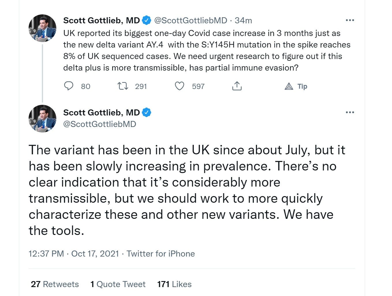 the interesting part of the question is this: is this AY sub variant more virulent/lethal than the previous variants and is this new mutation making it even more so? because that would be extremely interesting and deeply counter to expectation.