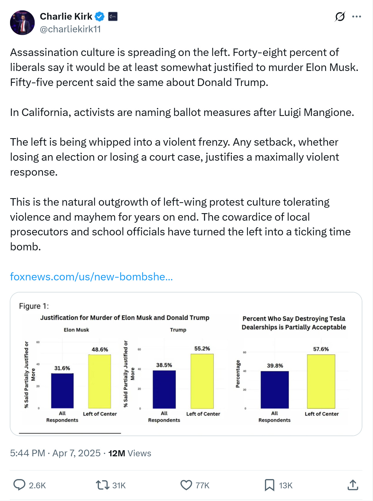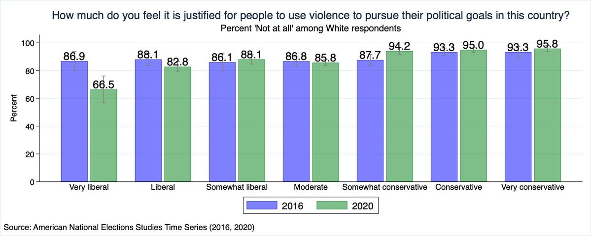 from 2016 to 2020 “violence as the path to our political goals” became even less popular on the right, but look what has happened on the left, especially the far left.