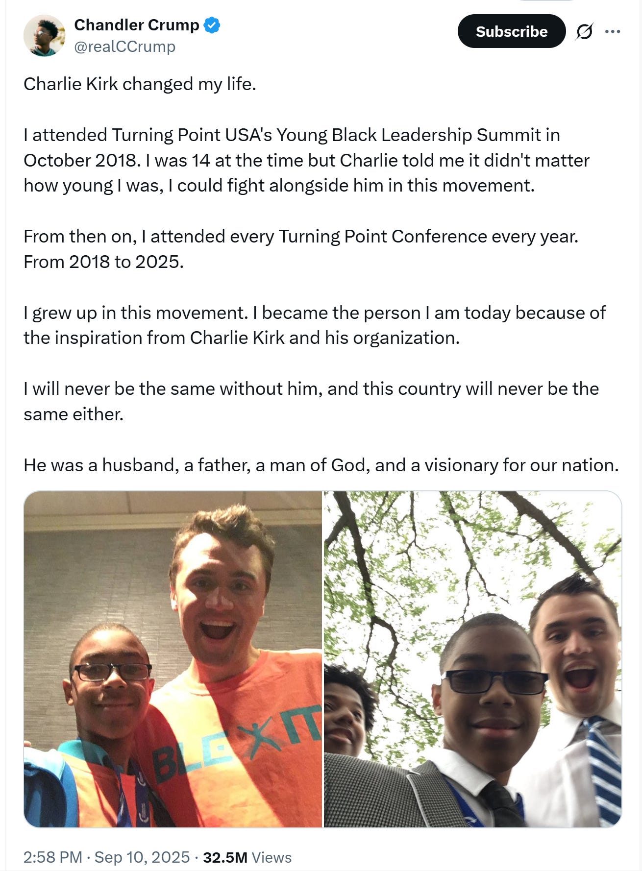 i did not always agree with charlie kirk. often i did, sometimes i did not. but i respected him. i deeply, seriously respected him. i respected charlie because he was a real, genuine human, true to himself and courageous in his convictions. and we need more like him.