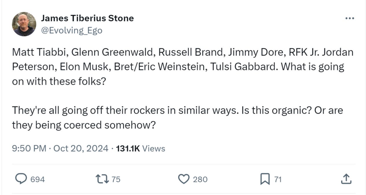 you’re isolated and self-segregated in a raging maelstrom of ideological purity tests with instant expulsion for the most miniscule deviation. seriously, you could not design a more powerful engine to rarify loss of perspective.
