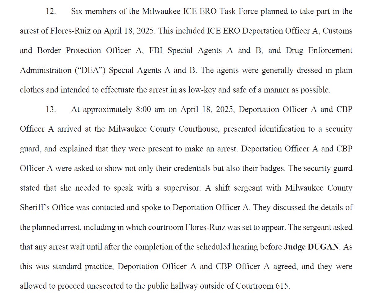 apparently someone announced “ICE is here” in the courtroom and then judge dugan left the courtroom to call the chief judge and then brought another judge with her to confront the officers in the hall.