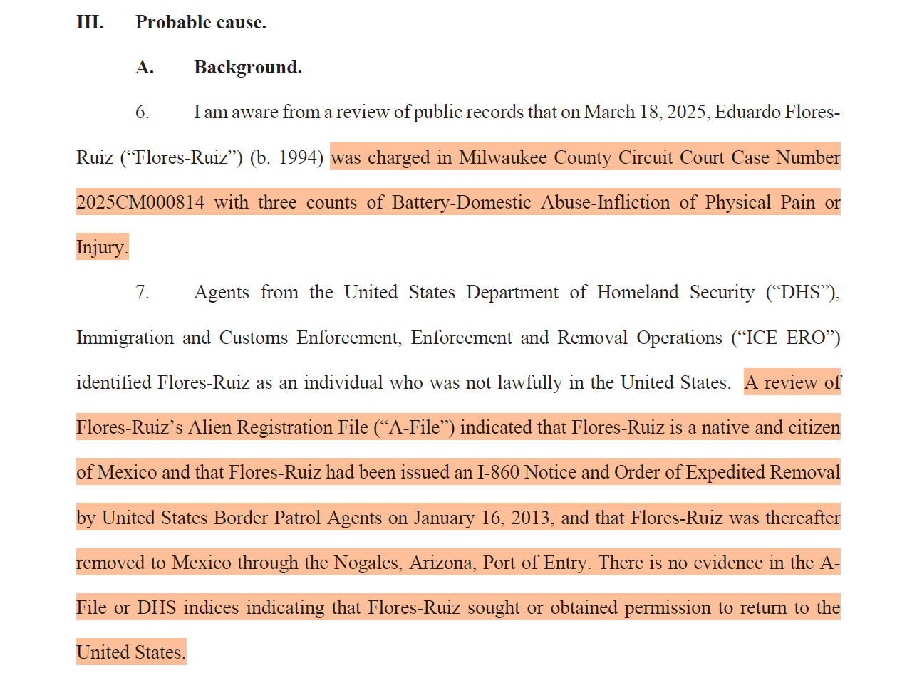 so, eduardo flores-ruiz was found to be in court. he was answering violent domestic battery/abuse charges and had already been deported from the US once before (in 2013) and had snuck back in.