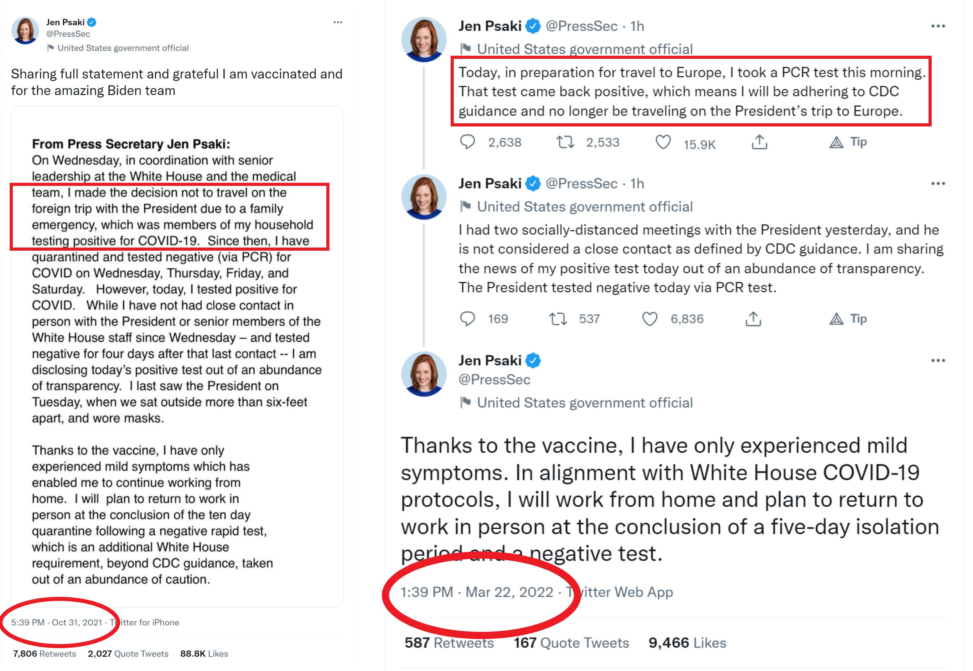 Joe is in no danger; they didn't give him the shot. Psaki, OTOH, has been triple-vaxxed, I believe, thus, she is susceptible to continuous reinfection. Lucky for her, she gets to skip the Euro trip, on which Joe might encounter a false flag event to finish him off...