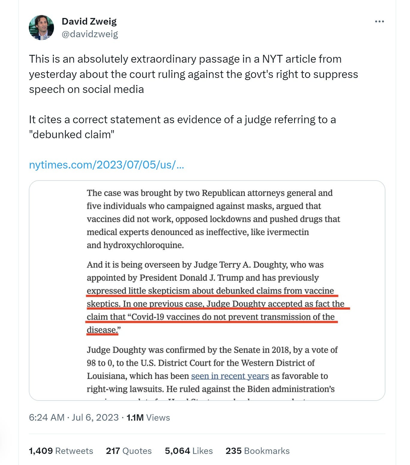 jeepers you guys, it looks like the new york times is still saying that “covid-19 vaccines do not prevent transmission of the disease” is “debunked claims from vaccine skeptics!”