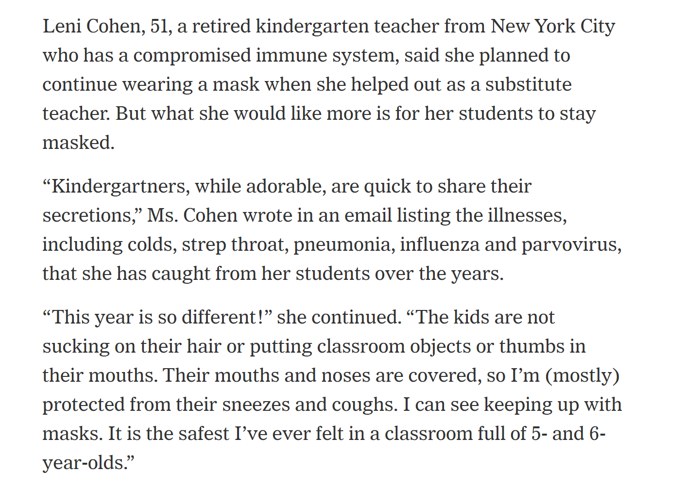 Yeah, definitely Leni! It's much more important to keep your immune system dormant than for Kindergarters who are just learning about the world see each other's expressions and learn to communicate. Screw our next generation! As long as us adults feel a false sense of security!