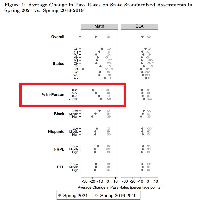 thus, a 15 point overall drop (and closer to 20% in low attendance schools) implies that 20-25% of kids who were at “passing” no longer are.