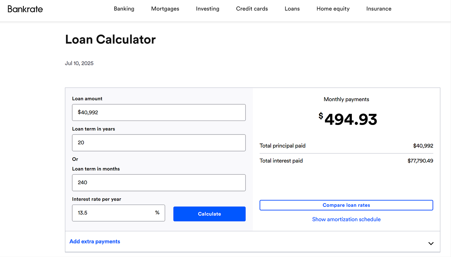 3 minutes with one of 100 available online loan calculators would have made this plain, and it’s not like these terms or the basic function of interest over time were hidden concepts.