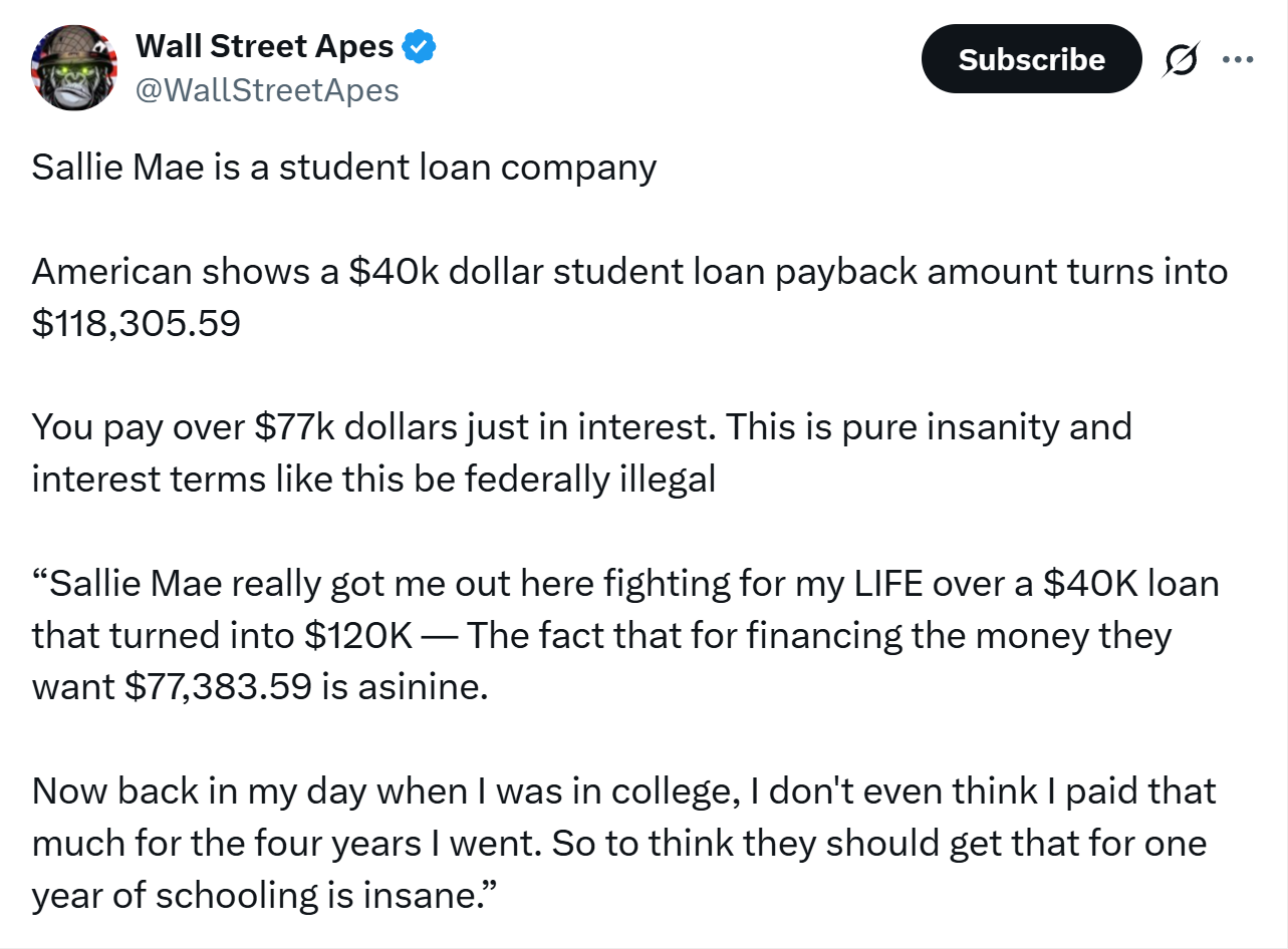 it seems like the key issue here is that we're sending people to college who do not understand how interest, lending, or loan terms function.