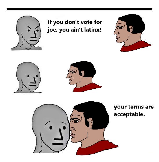 this pervasive conceit that “if we flood the country with hispanics, they will support our anti-family, anti-religion woke dependency culture and join our complex gender and class topologies as we make up bizarre bespoke names for them” has long baffled me.