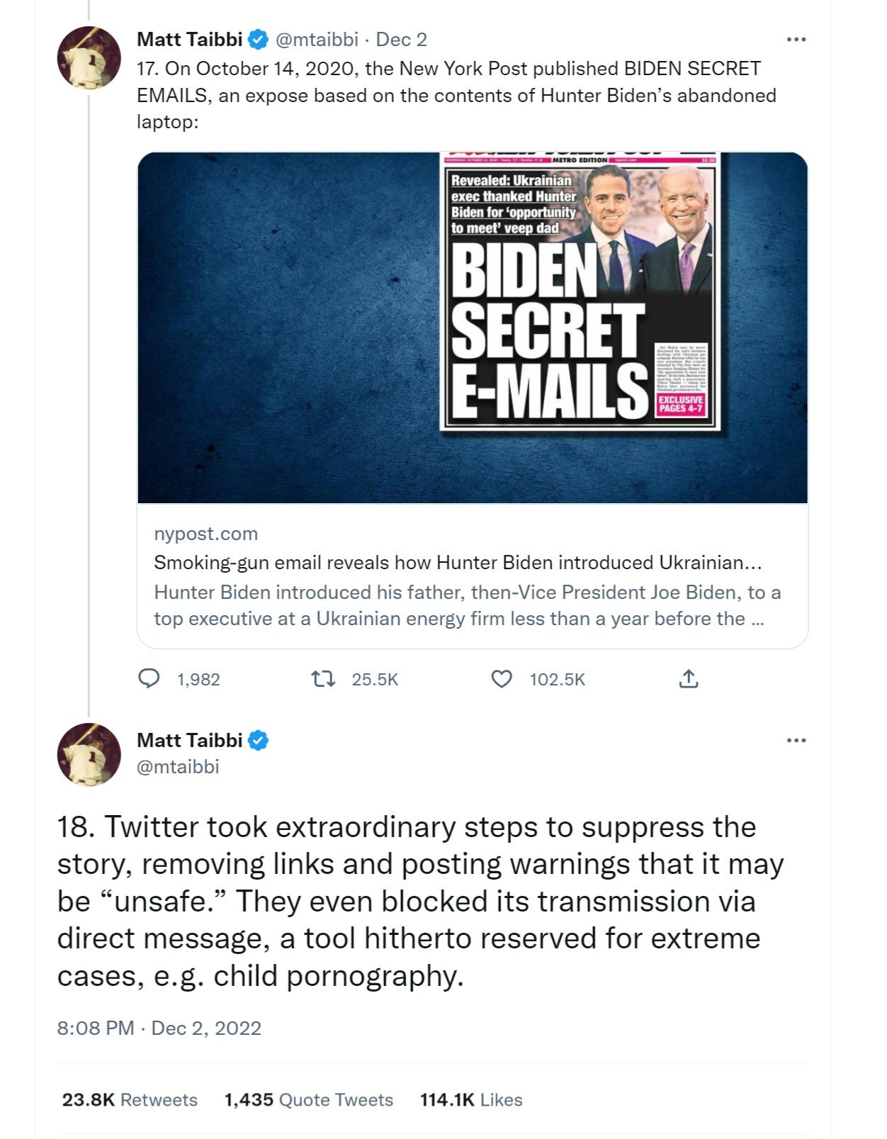 and, of course, if you have former FBI folk working at twitter and literally trying to censor the disclosures going out to “come clean” to reporters, well, woof. that can become quite a stenchous kettle of fish. it’s also just pitch perfect allegory. you couldn’t write it better.