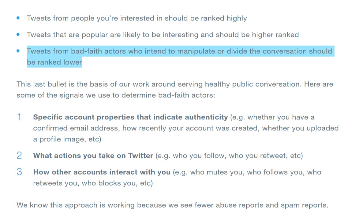 many, many denizens of the bluebird realm complained of this as they saw their reach and engagement pole axed and halved then halved again while opposing viewpoints were foregrounded.