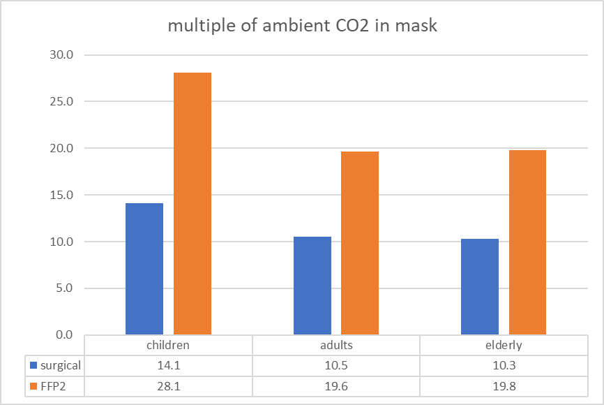 all masks in all ages resulted in at least a 10X rise in CO2 rate from ambient and some were nearly 30X.
