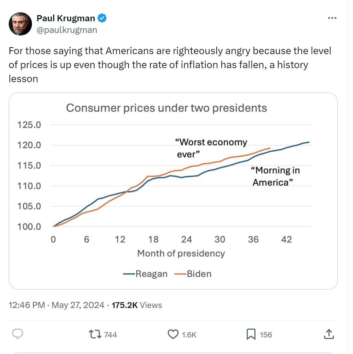 bidenomics are just like reganomics! so stop being angry about the economy and start realizing how great things really are!