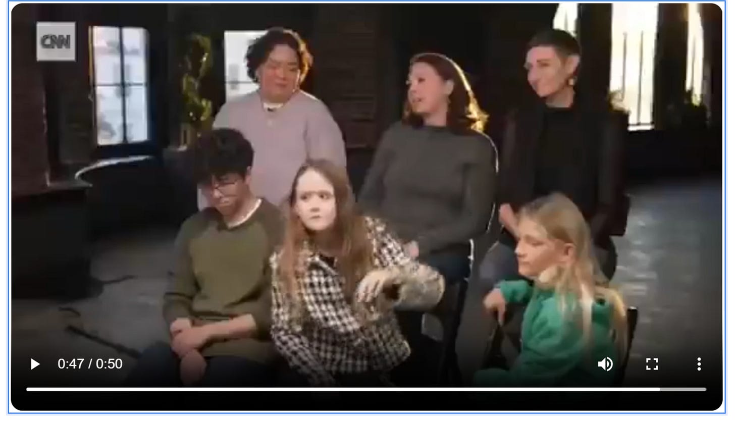 look at the mom on the left. she’s looking right at it. she knows damn well what she’s seeing but all we get is mild sort of “kathy bates in misery” level disapproval. look at her kid in front of her. he does not even look up. he has the posture of a beaten dog, cowed, submissive, absent. his one motion the whole interview is to look around startled when mommy michele starts talking. that’s a stress response to threat vectors. then he tries to get “small” again and escape notice.