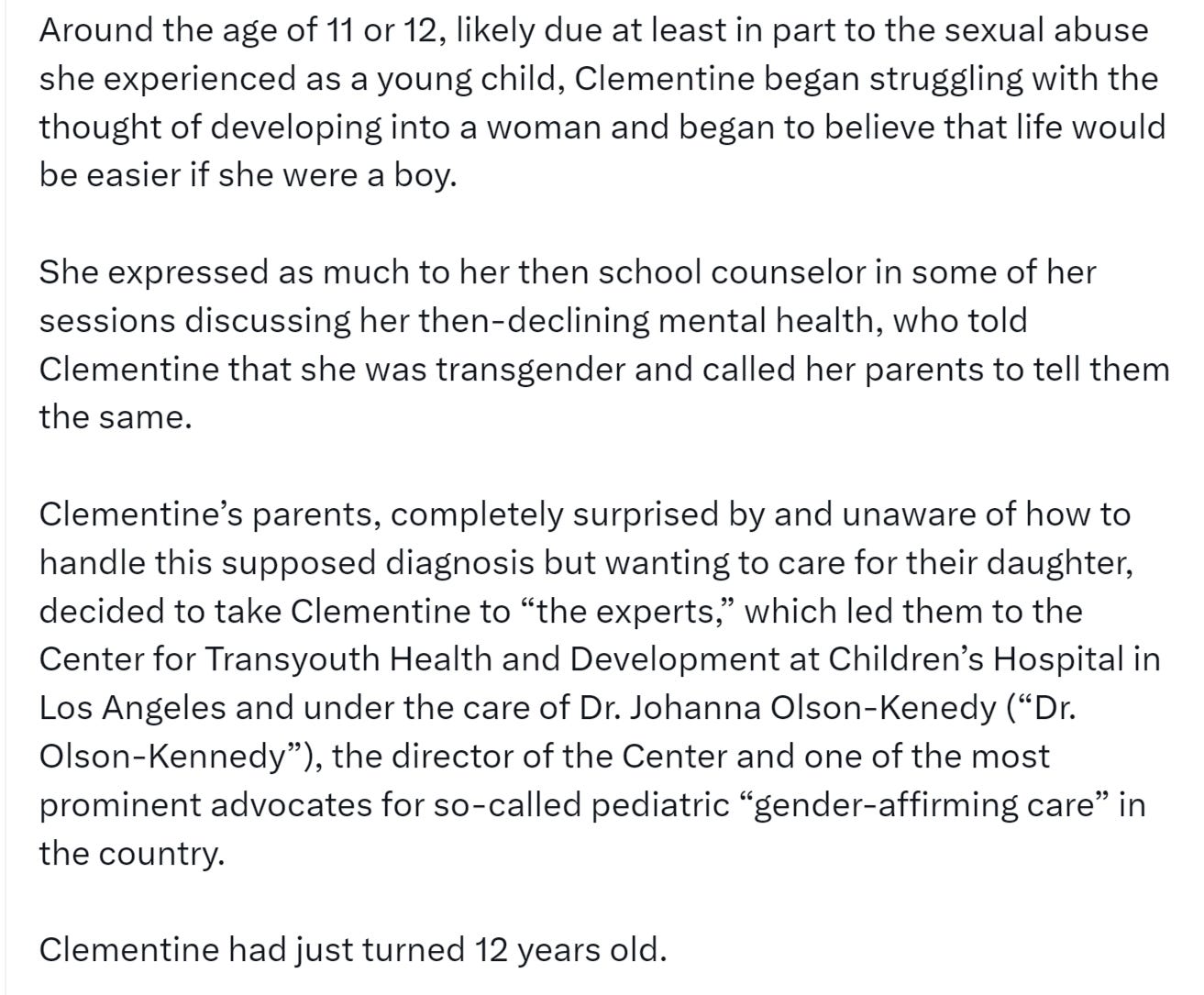 cases like this where mentally ill and “neurodivergent” children get railroaded into “affirming care” and no one is allowed to speak against it pervade. stop and really think about this. this 12 year old girl whose family has a history of mental illness was: