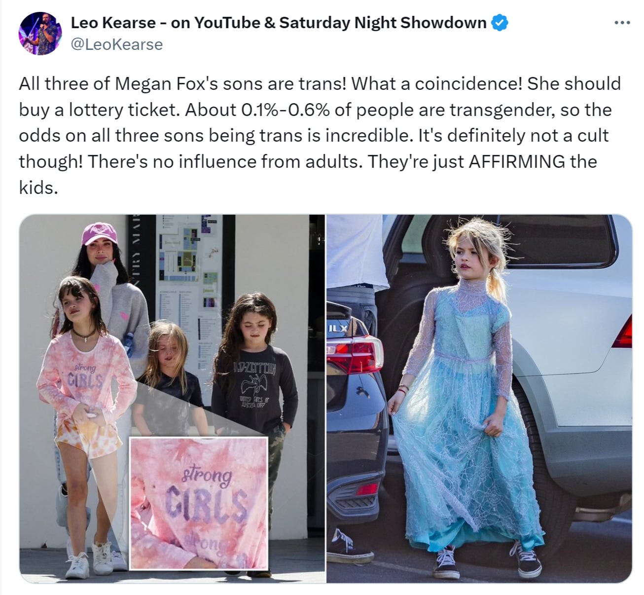 it’s become a celebrity issue, the “little dog in a fendi bag” of the 2020’s, but having 3 trans kids is about like having 3 axe murder kids: it’s not “just probability” or genes, it’s maternal mayhem run riot. it means there is something going on in that house. (and FWIW, i think the 0.1%-0.6% rate is vastly inflated)
