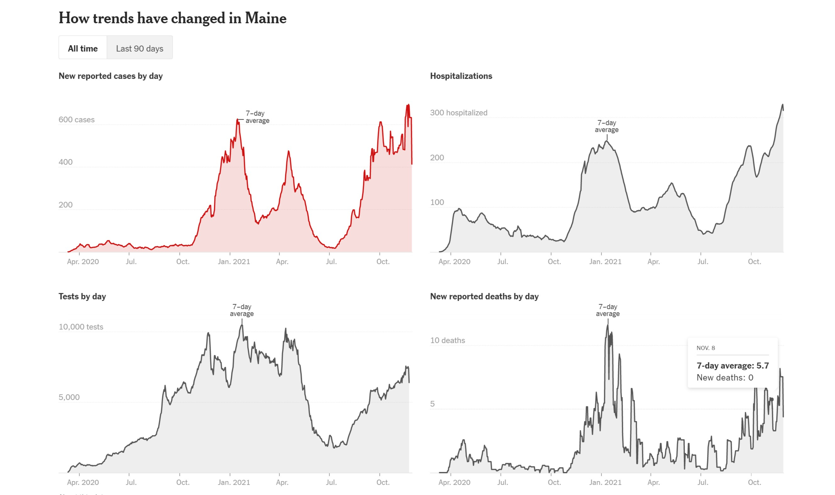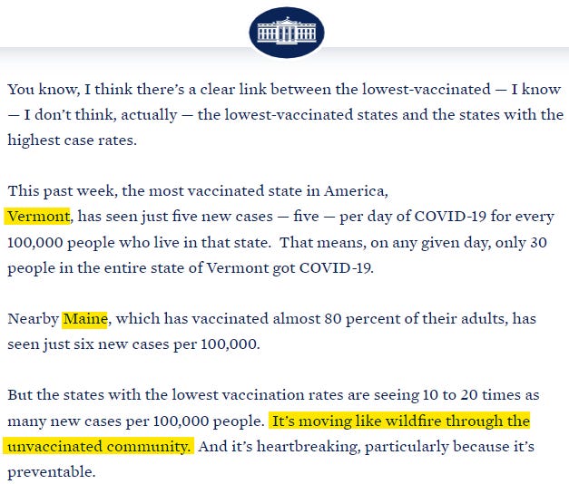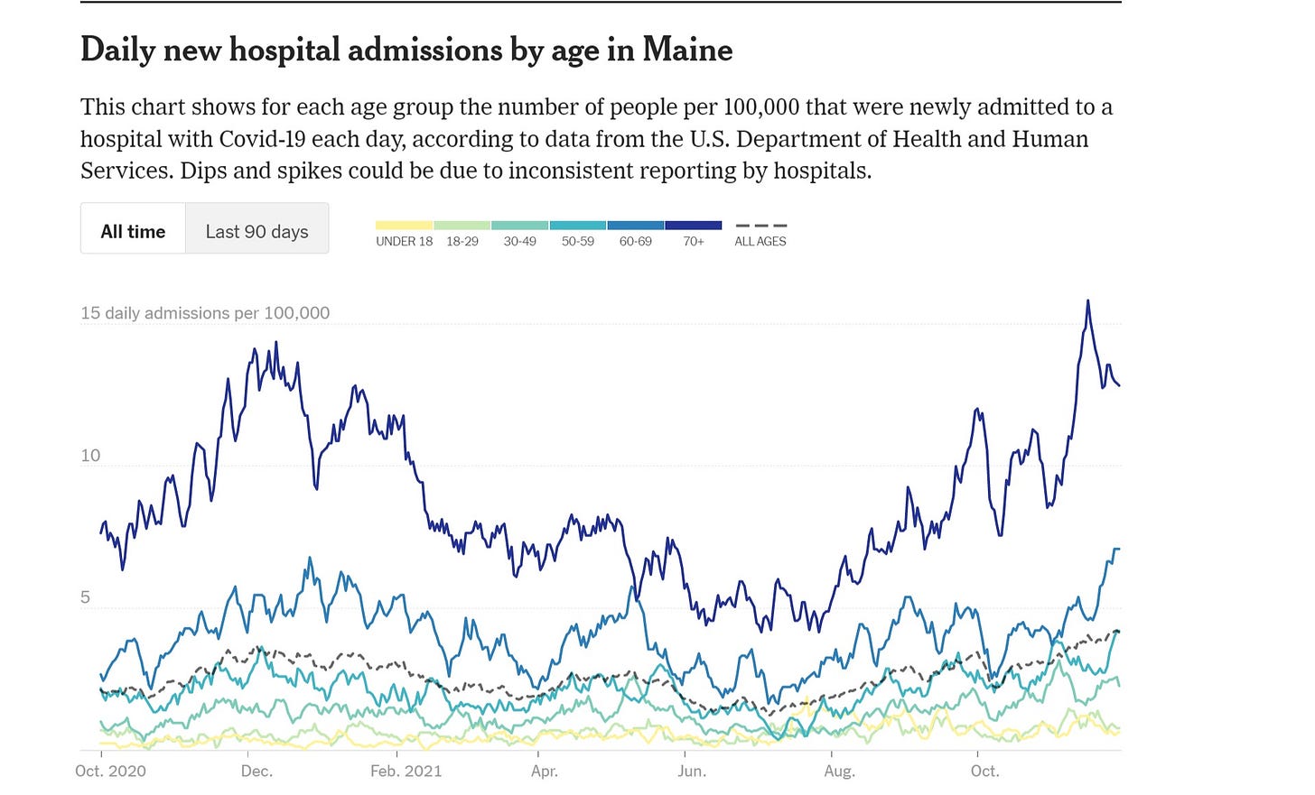 maine is 90% 12 and up vaxxed and more than 99% of the over 65’s . yet it has seen has seen record cases, record hospitalizations and near record deaths despite being nowhere near wheat is usually peak season. that won’t be for 4-6 weeks.