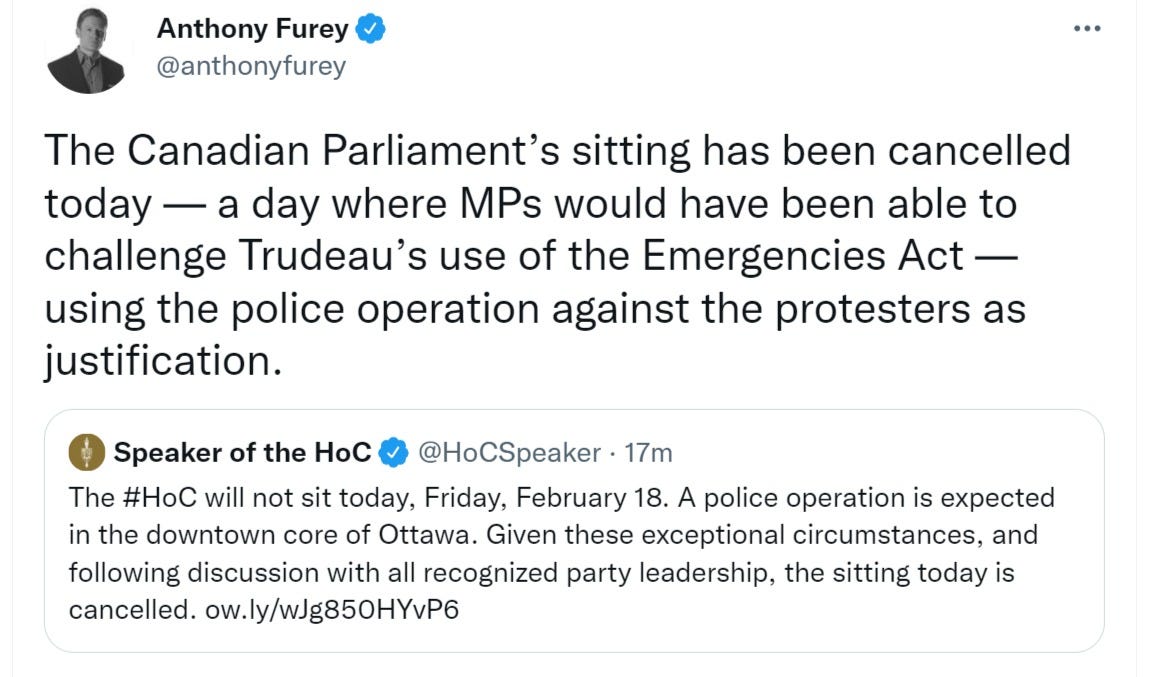 such salients will be ignored in the pretexts for the use of usurped exigent powers to seize bank accounts, arrest people for “mischief,” and prevent official debate on whether such powers should even be in place.