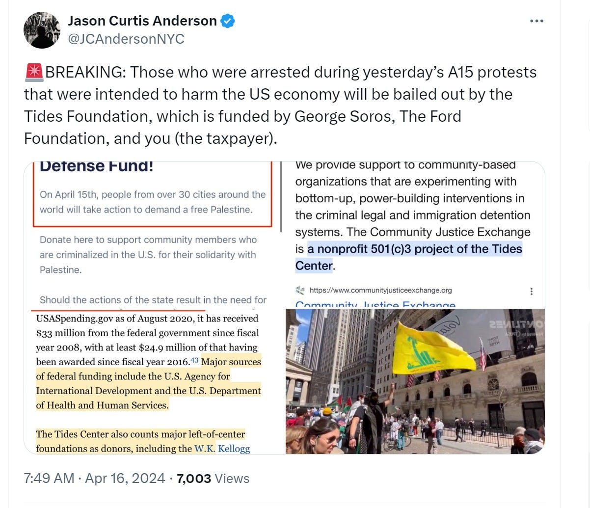 and in the unlikely event that any of these people do get in trouble for blocking bridges or highways, well, you have your gang go bail them out.