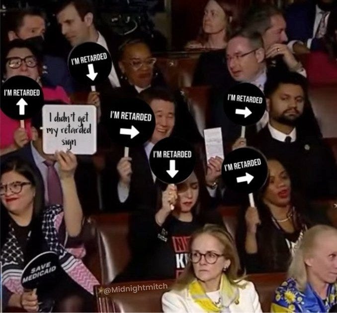 the democratic dingbat clan has a clear plan: disrupt, disapprove, disdain. they wanted to show unity of purpose and position by, wait for it, acting like colicky babies and 7th grade mean girls. it did not go well for them. everyone saw it coming.