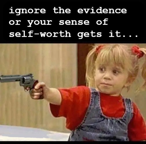(honestly, i suspect there is some sort of power law here where twice the initial conviction engenders 10X the reality denial.)