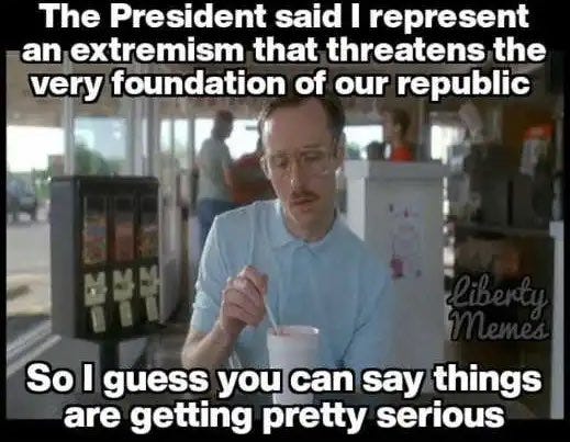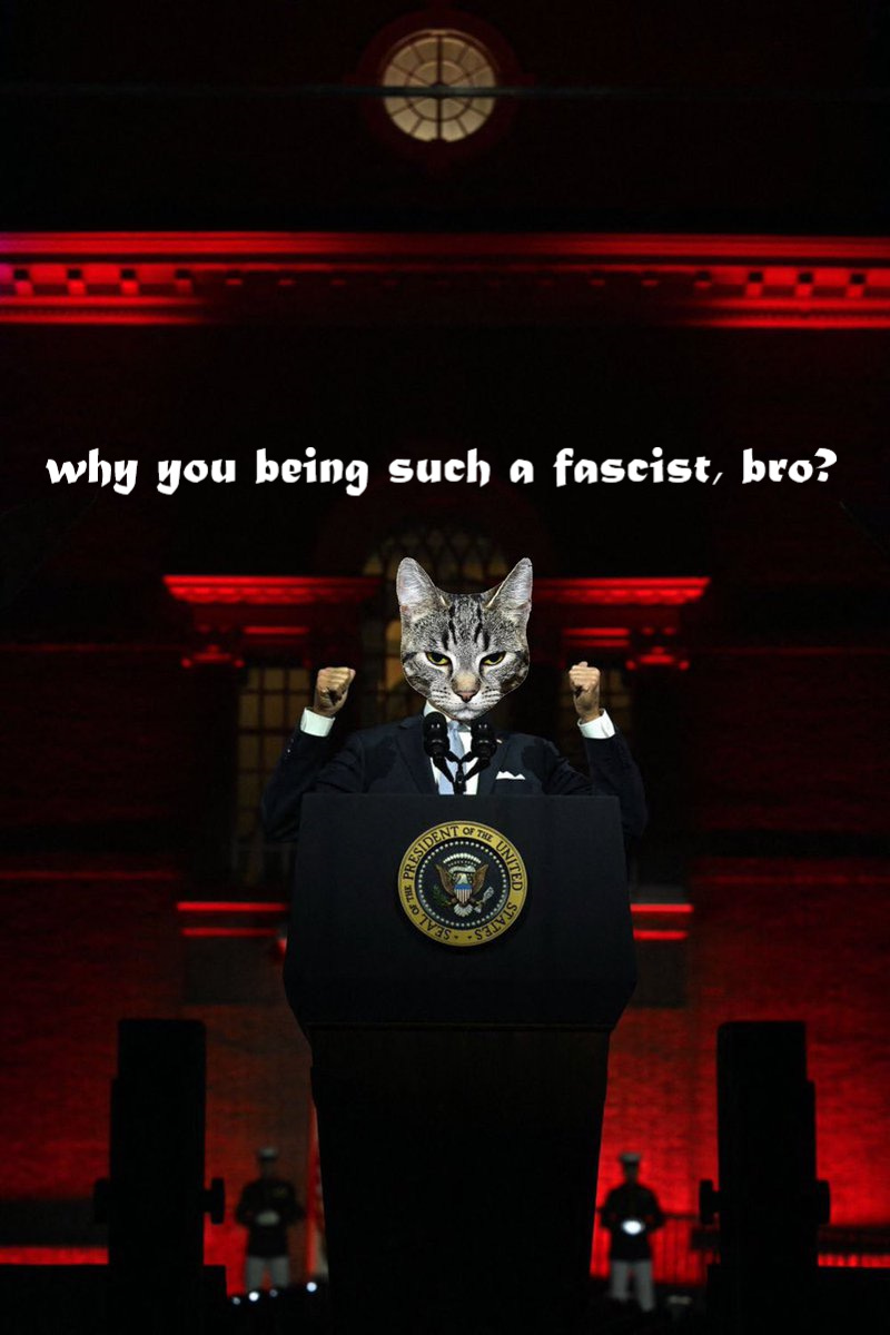 pretty soon, one side is deep into totalitarian fascist precepts that they make mussolini look like thomas jefferson while mistaking them for centrism and the other is left standing around looking like this and trying to figure out how to fight what’s happening: