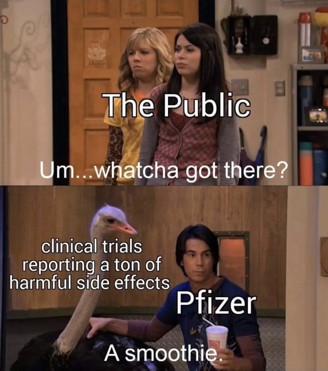 do we have the smoking gun yet? i’m not sure. but i suspect we will. anything that smells this pfishy has rotten poisson somewhere. early looks seem to show major manipulation of data and suppression of adverse events and possibly even surgishpere style data fabrication (as well as all manner of games played to make efficacy look high.)