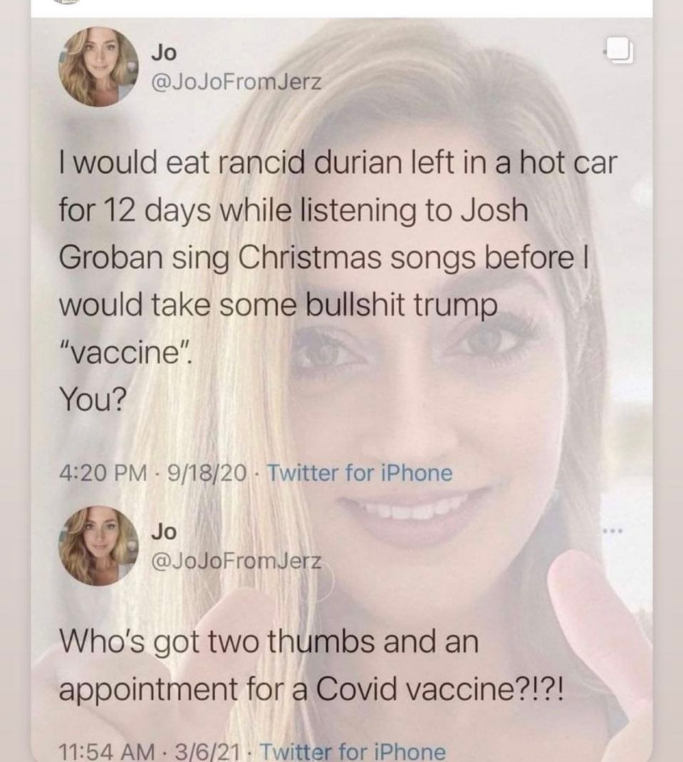 watching the very same people who we’re howling “FAKE VAXX!” and “FRAUD” before the election now try to vilify anyone who will not accept the very vaccines they said you’d have to be insane to take and morally grandstand about how you need to get injected or you’re an evil anti-vaxxer hell bent on killing kids and grandmas and destroying america carries less than no moral weight.