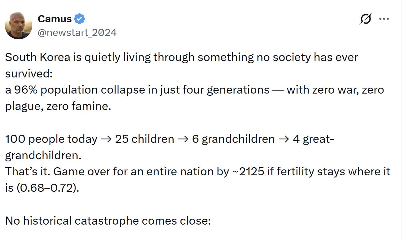 but japan’s economic problem is not population contraction. they crushed their economy under debt, unaffordability, regulation, and bad corporate structure 35 years ago and have been moribund since. they could not grow when their population was growing either.