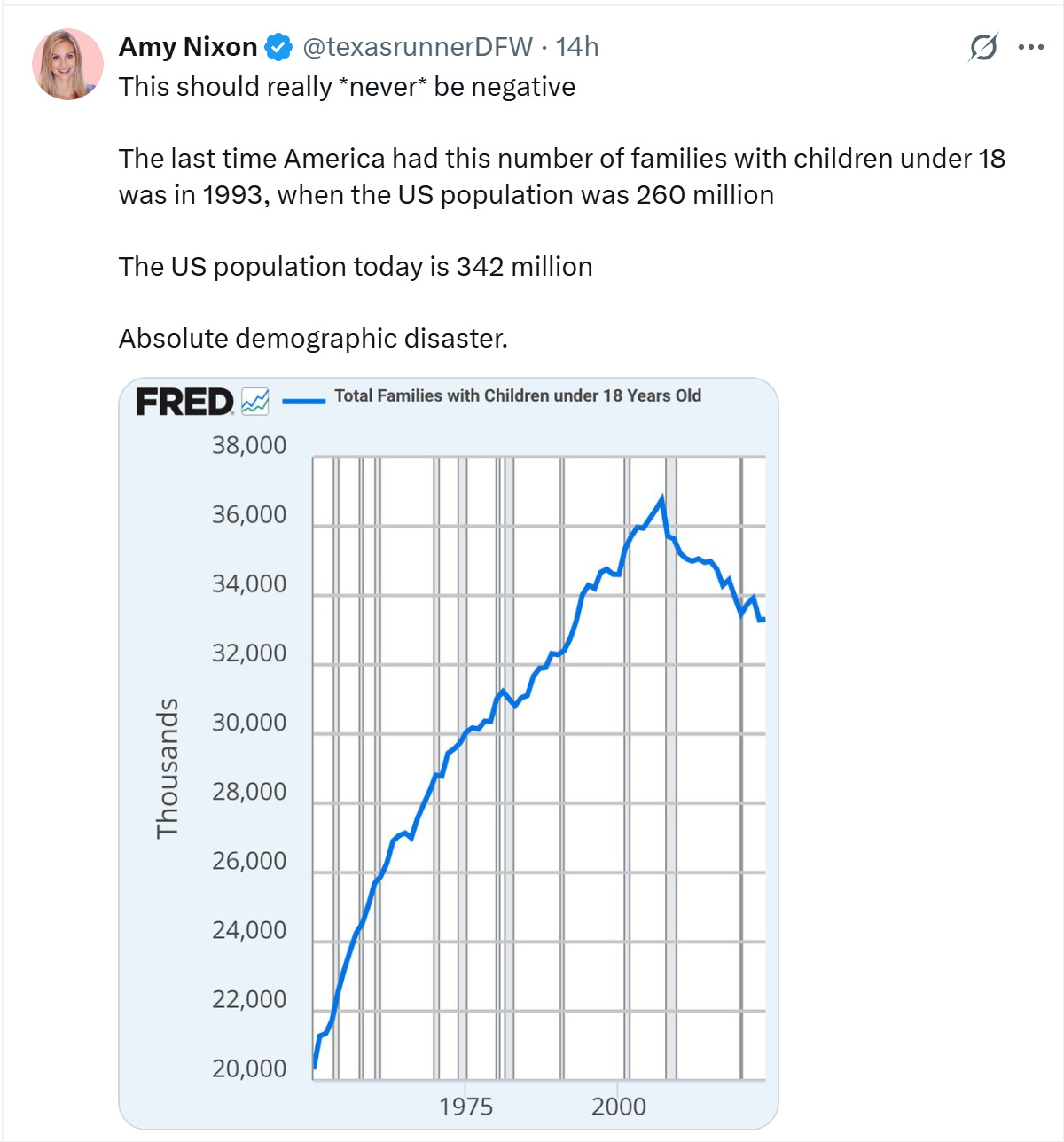 and why is anyone convinced that flooding the US with immigrants and immigrant labor does not further depress US fertility rates by driving up home and food prices, pushing down wages, and swamping schools?