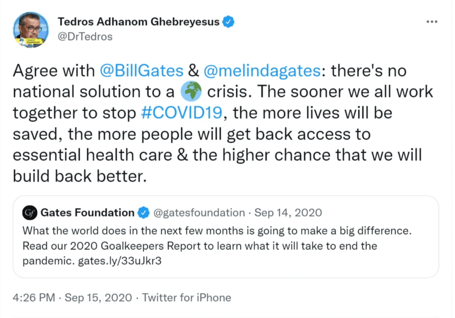 billy gates is neck deep in both, a charter member of the cool kids crony capitalist table at davos and a top funding source for the WHO, donating more than 10% of its budget. it’s clearly a great investment for him as it poops golden eggs in terms of early information and hard sell opportunities for poor countries. it’s a seat at every table that makes you look like a philanthropist while in reality being a lead pipe wielding coercive corporatist.
