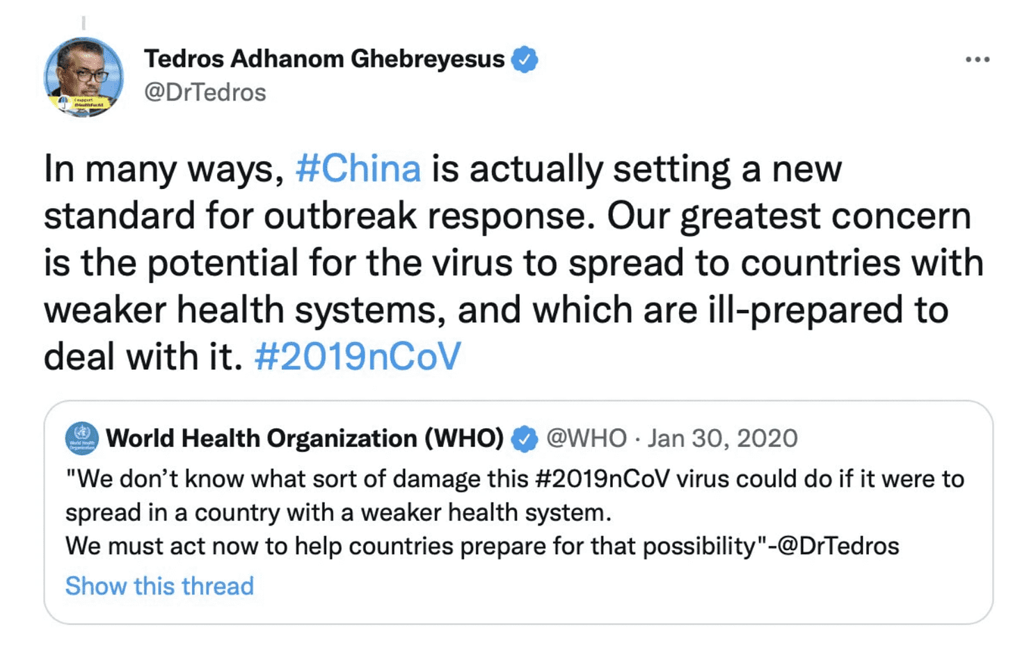 wrapped up in this from the very beginning were load of the WEF gang (who had just run an oddly timely pandemic wargame for a disease an awful lot like covid) and the WHO.