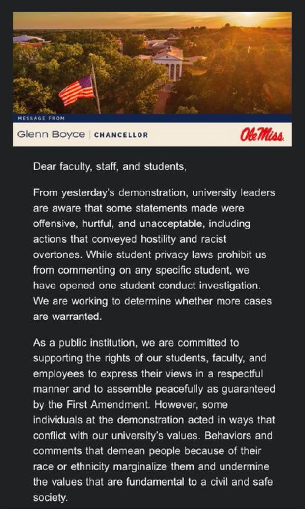 just as it’s wrong for a university to privilege people for their race or gender or sexuality, it’s also reasonable for a university (or any voluntary association or institution) to demand that its members treat one another with a certain level of respect and just because “the other side” is yelling nasty racist and violent stuff (and increasingly starting to pay a price for it) that’s no reason to jump into the skillet with them and get yourself cooked as well.