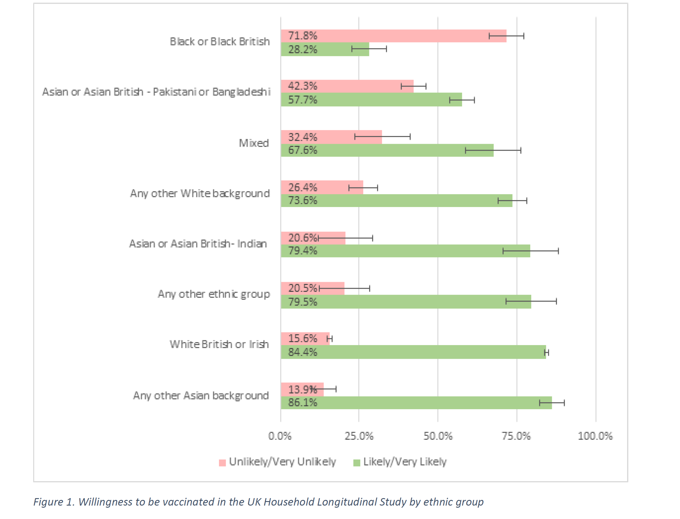 black people in UK have expressed only 28%willingness to vaxx vs 84% in white.