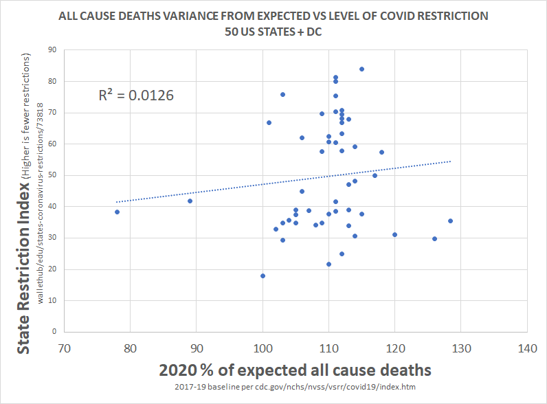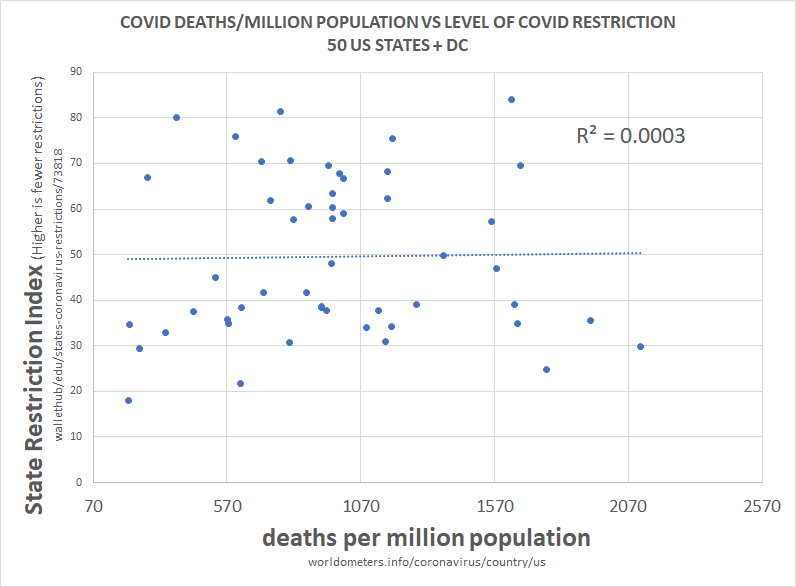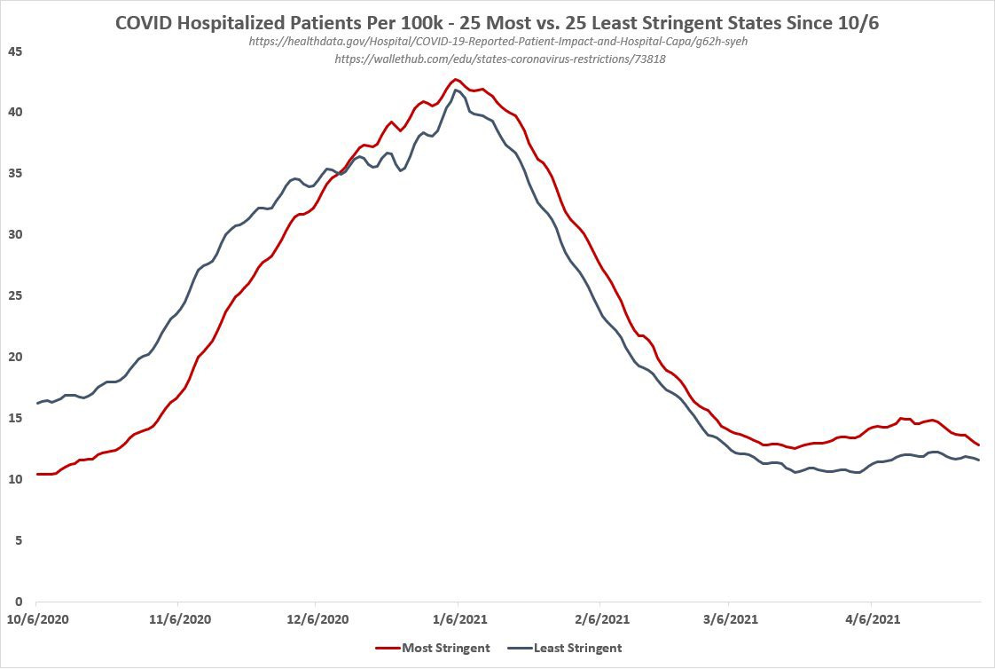 even more interesting, there has simply been no difference in actual outcomes in states with high vs low levels of lockdown, masking, and other mitigations. so, it’s not that “some places had it worse and are responsive to it.” it’s that some places got much more scared, acted more rashly to impose ineffective and fear inducing policy, and did even more harm.